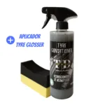 - Pulveriza uniformemente el Acondicionador de Neumáticos sobre la superficie del neumático o sobre el Aplicador Tyre Glosser que regalamos con el producto (el neumático debe estar previamente limpio).